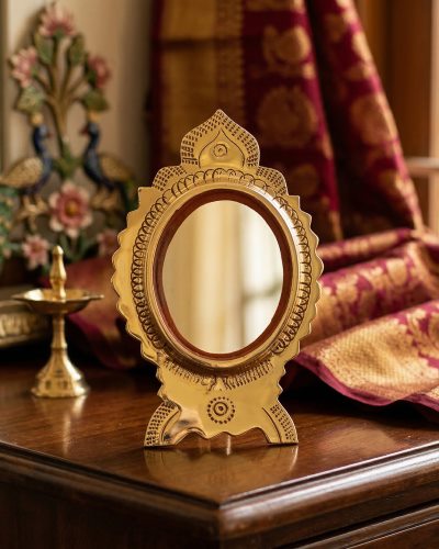 Experience the unmatched clarity of the Aranmula Kannadi, a legendary metal-alloy mirror handcrafted in the heritage village of Aranmula, Kerala. Unlike ordinary glass mirrors that use a silvered back-surface, this “GOPI KANNADI” is a front-surface reflection mirror, offering a distortion-free image that has fascinated scientists and spiritual seekers for centuries.