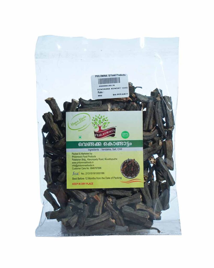 Pavakka Kondattam is a traditional Kerala-style sun-dried delicacy made from freshly sliced bitter gourd (pavakka), seasoned with salt and chilli. The natural drying process preserves the vegetable’s authentic taste while reducing its bitterness. When fried, it becomes delightfully crunchy with a mildly spicy flavour, making it a perfect accompaniment to daily meals.