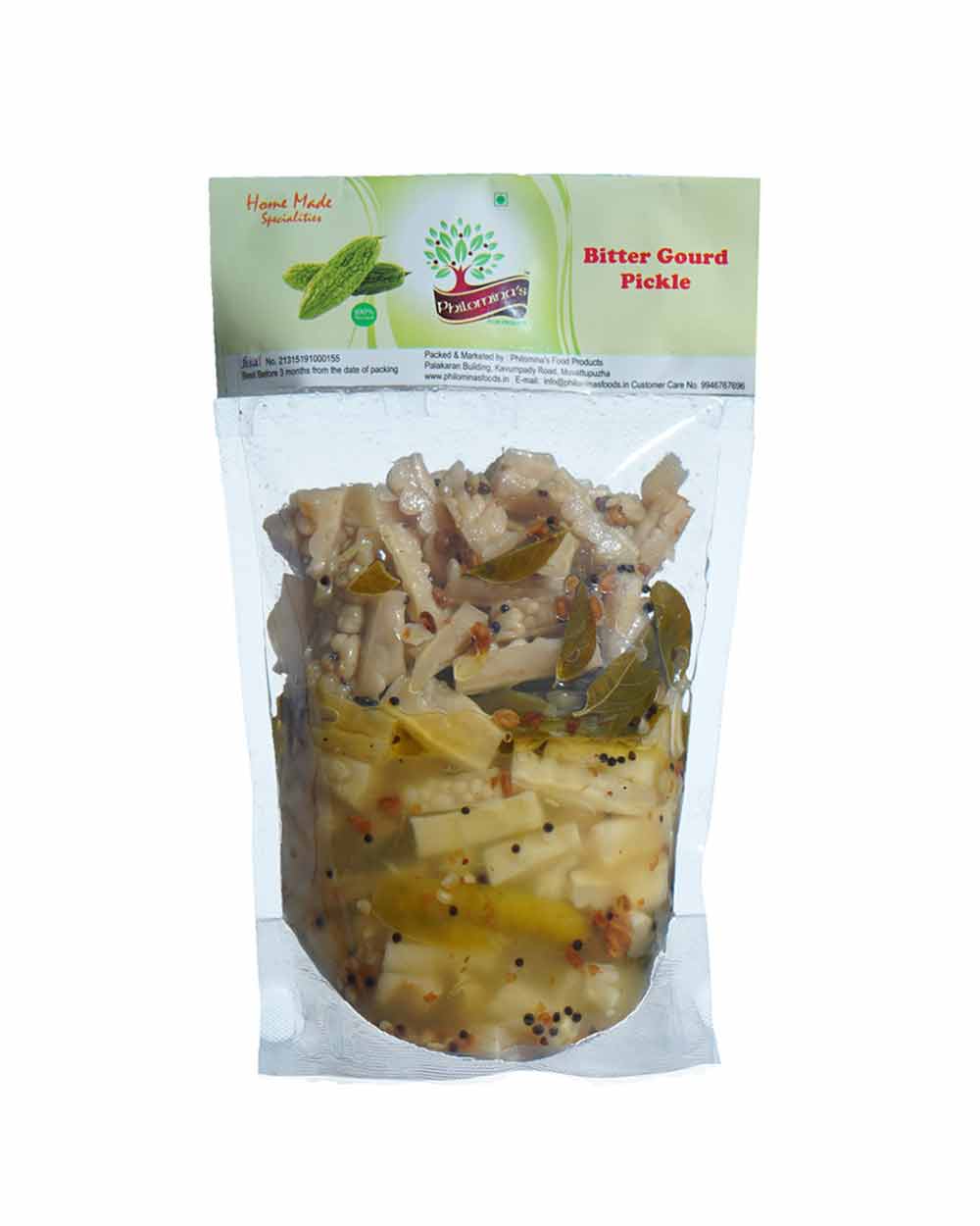 Bitter Gourd, Chilli, Mustard, Gingelly Oil, Fenugreek, Salt, Vinegar, Curry Leaves