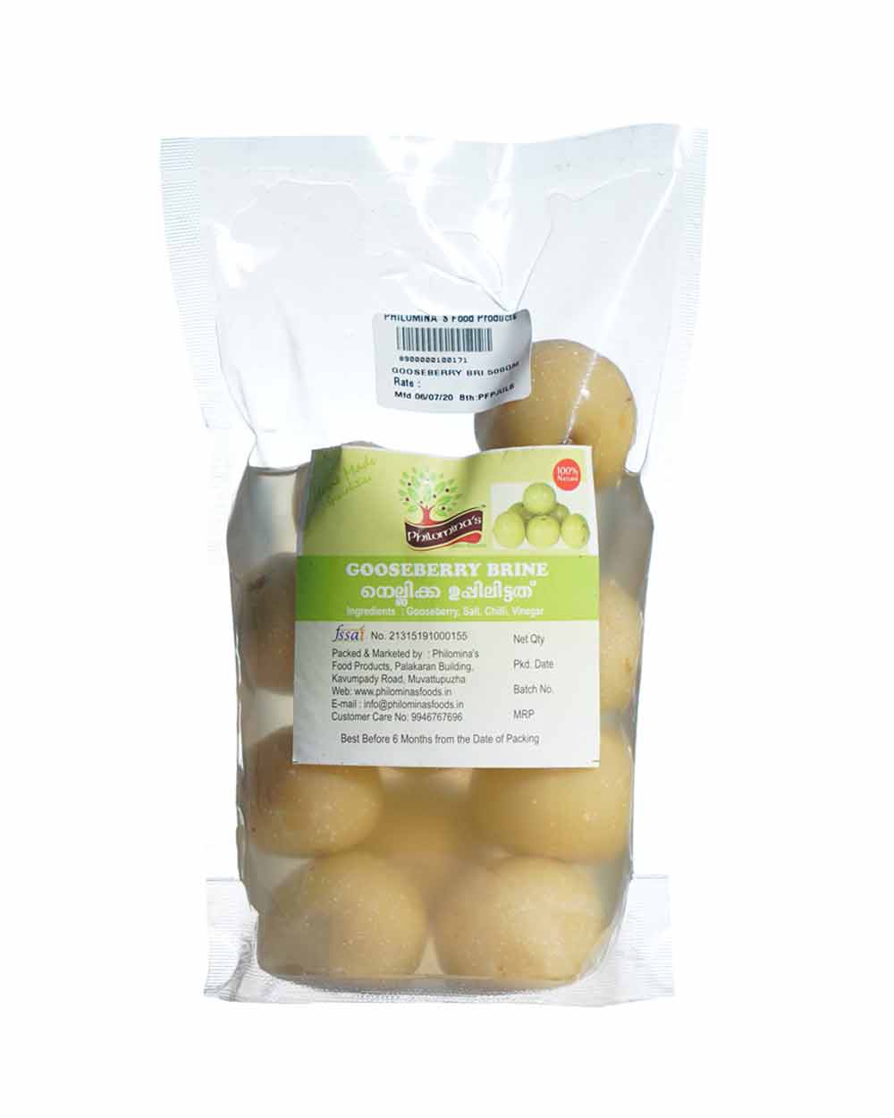 Gooseberry Brine is a traditional Kerala-style preserved delicacy made from fresh, whole gooseberries cured in a tangy brine of salt, chilli, and vinegar. The curing process enhances the fruit’s natural tartness, enriches its flavour, and increases its shelf life, making it a perfect homestyle accompaniment to everyday meals.